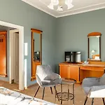 The accommodation has 36 rooms, comprising a dressing area and a seating area. A flat-screen TV with satellite channels, along with a mini-fridge-bar, are offered. They are furnished with an Art Nouveau decor.